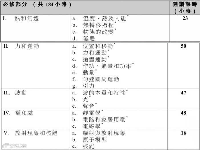 为了照顾学生的不同兴趣、能力和需要,选修课题包括《天文学和航天科学》、《原子世界》、《能量和能源的使用》及《医学物理学》。