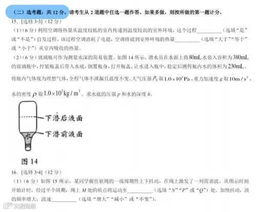 物理试卷二:包含了四个部分,同学们只需要选择2个部分答题即可。