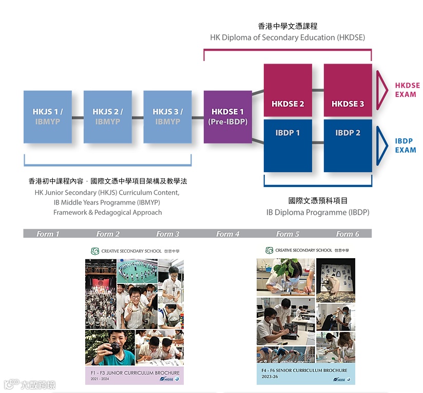 在中四至中六阶段,学生主要修读香港中学文凭课程,而部分合适的同学,可以于中五及中六选读IB文凭预科项目。