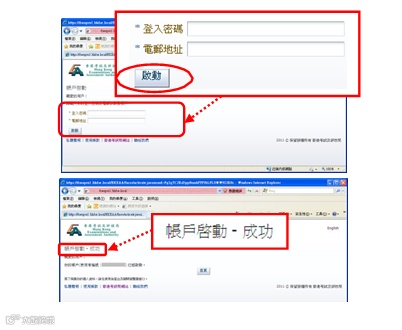 在「账户启动」版面上,输入你的登入密码及电邮地 址。按[启动]完成启动程序。