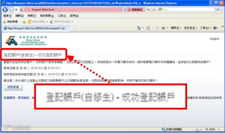 如成功建立帐户,系统会立即显示「登记帐户(自修生)-成功登记账户」版面。请留意以下版面显示的重要数据: