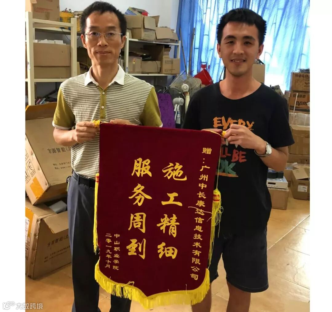 广州中长康达信息技术有限公司凭借丰富的项目管理经验、专业的服务质量,得到了中山职业技术学院充分肯定,并赠予“施工精细 服务周到”感谢锦旗。