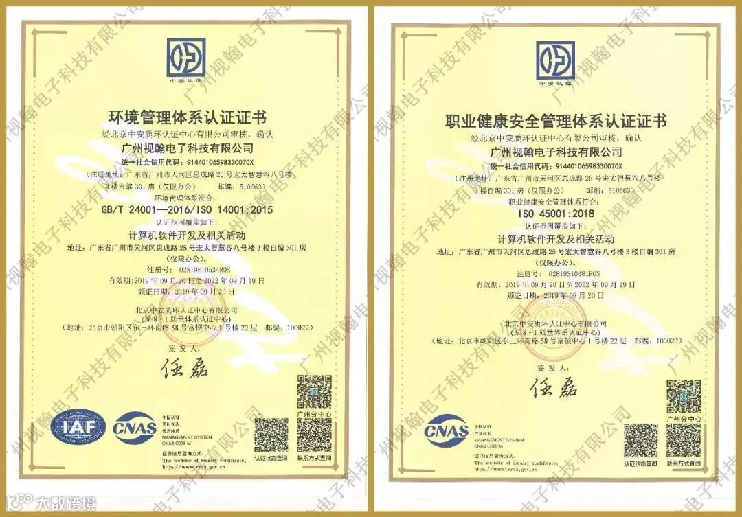 9月8日至10日,认证机构的审核专家通过对视翰电子的环境管理、职工健康安全管理进行了全面、严格的审核,得到一致通过后,视翰电子再获2证:环境管理体系和职业健康安全管理体系认证证书。
