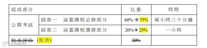 生物科的公开评核由公开考试和校本评核两部分组成,略见于下表:(2023年校本考核取消)