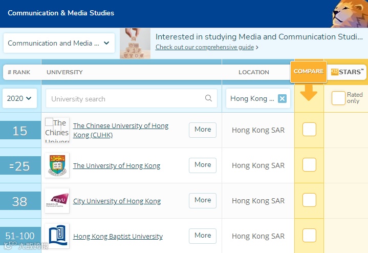 香港浸会大学传理学院最负盛名,辖下新闻系在2011年经Asian Correspondent新闻网评定为“亚洲学生心中的全球十大新闻学府”,和榜内的哥伦比亚大学新闻学院齐名,乃校内招生志愿的前三名。