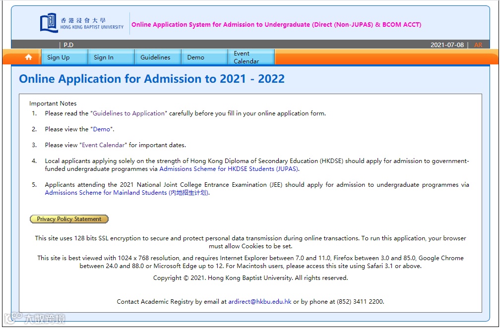 香港浸会大学的非联招招生办法(Non-JUPAS)报名资料及网址(2020年年数据,仅供参考)