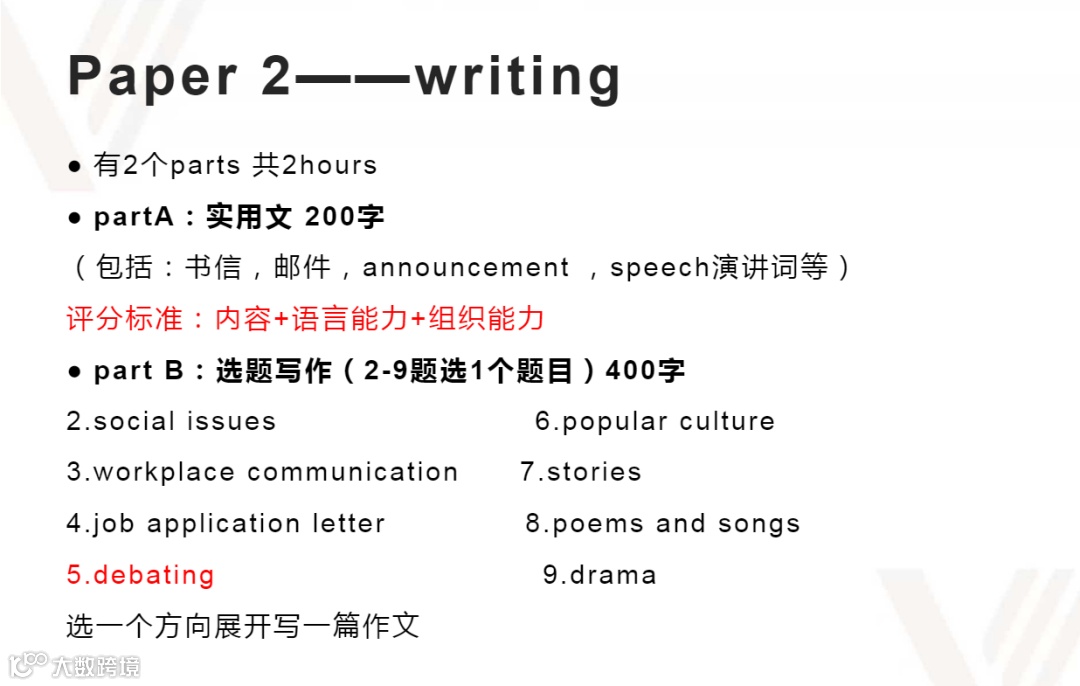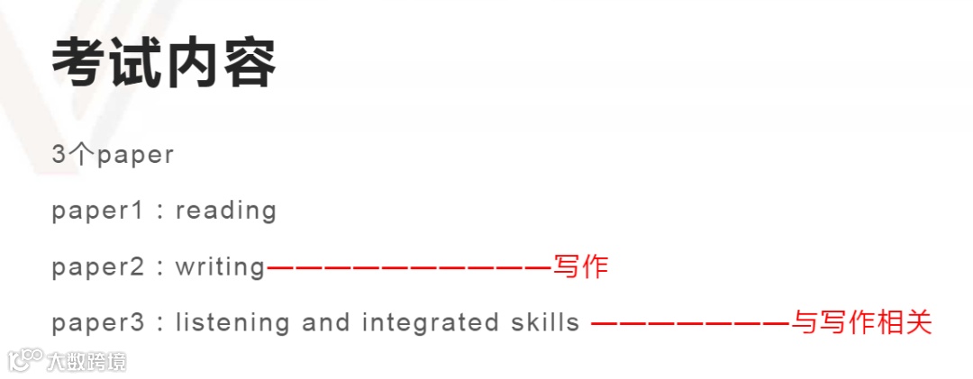 paper 2即英文写作writing,而paper 3 中listening and integrated skills (听力综合)会出现与写作相关的题目。