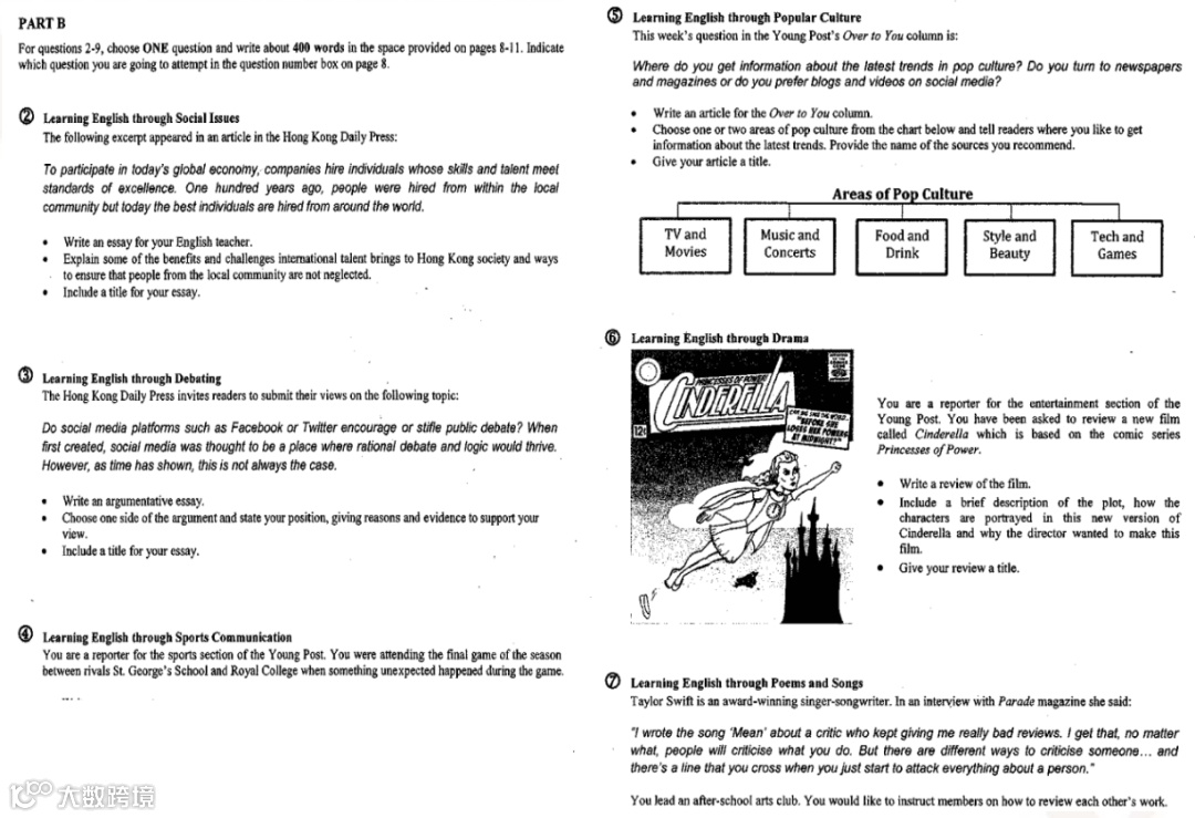 Part B考查到的文体相对较多,常见文章、书信及电邮等,需要考生们熟悉各种文体格式,同时由于DSE作文很强调文体语调及用词,所以同学们要特别注意。