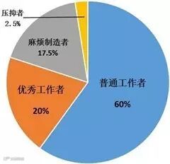 一家想要快速发展的企业应该尽量吸纳优秀工作者,发展普通工作者,处理好麻烦制造者(易做错事),找出并剔除压抑者(团队毒瘤)。