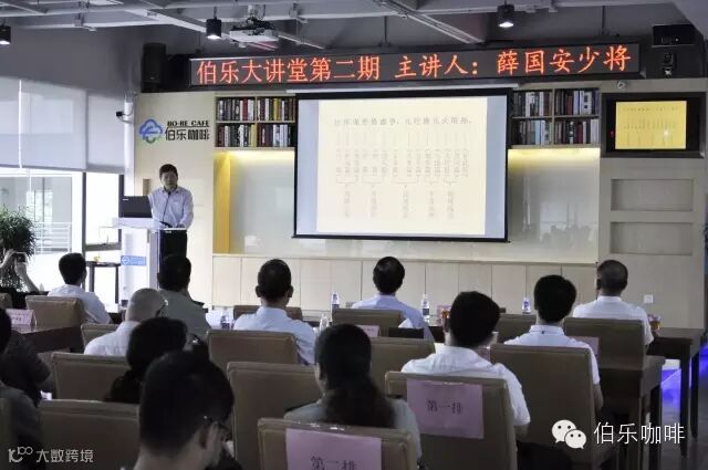 10 月10日,由省军转干部就业创业促进会主办、伯乐咖啡承办的伯乐大讲堂“从《孙子兵法》谈当代国防安全”专题讲座顺利举办。国防大学战略教研部副主任、孙 子兵法研究中心主任、教授、将军、博导薛国安担任本次讲座的特邀主讲嘉宾。 国务院军转办、省军转干部就业创业促进会、省军转办、市军转办、广州军区、广东省军区转业办以及天河区人大常委会等领导出席了本次大讲堂。宏太智慧谷、中 大岭院湘友会等部分企业家以及对国防安全感兴趣的伯乐咖啡会员共计150多人聆听了演讲 。