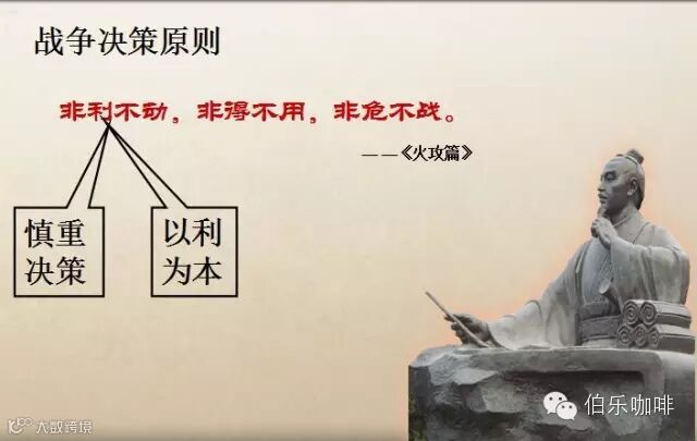 “非利不动,非得不用,非危不战”,对于战争必须慎重决策,以核心利益为衡量标准,无利无所得且不到紧要关头不可动用战争如此具有破坏性的手段。不因为皮毛小利或一时意气而做出短视的决定,这不论是国事决策、企业管理还是个人决断都应如此。