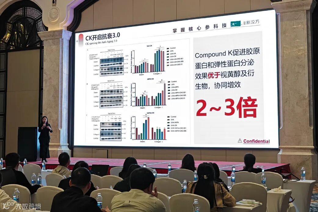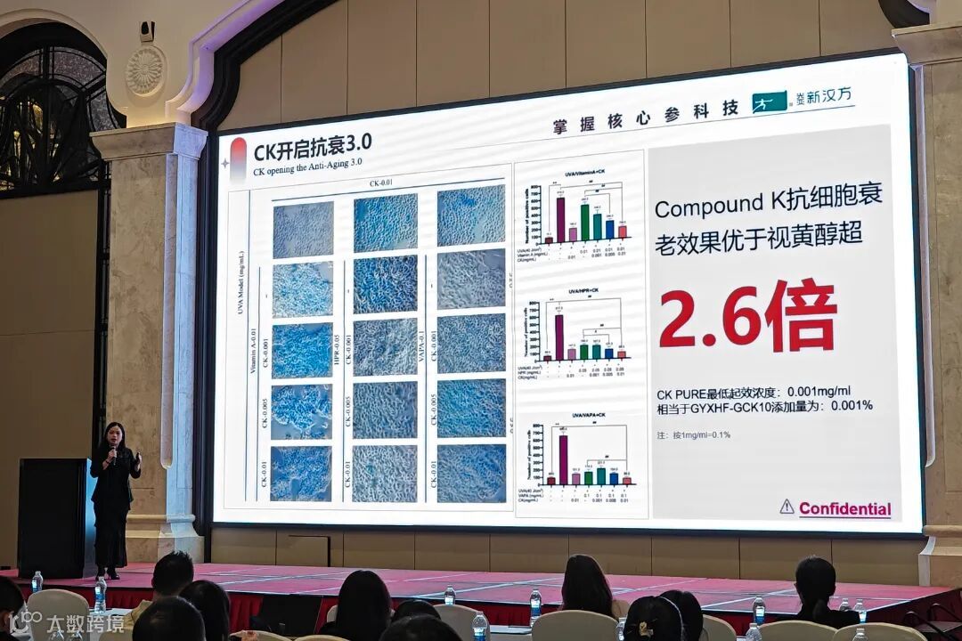 COMPOUND K作为天然最强抗衰分子,功效全面超越A醇及其衍生物,可作用超50+抗衰靶点、调控218个光老化基因、抗衰链路全覆盖、促进表皮修复、促进真皮ECM、细胞级超级抗衰分子;与A醇及其衍生物复配有减毒增效作用。