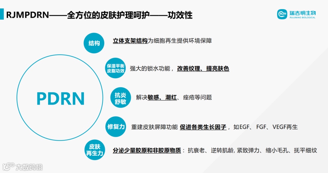 海洋是万物之源,是物种的发源地,而所有物种的代代传承离不开遗传物质不断地复制解码。在早期,人们发现三文鱼特定生殖细胞中的遗传物质有着促进皮肤移植后快速恢复的能力,这种遗传物质是DNA片段,被称之为PDRN。近年来,得益于PDRN的神奇功效,被广泛地应用在医药、医疗器械、医疗美容、日化产品、保健食品等领域。