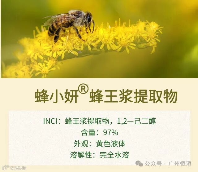 蜂小妍®蜂王浆提取物有促进皮肤细胞增殖、胶原蛋白合成,具有显著的修复再生作用;能够增强皮肤弹性,紧致抗皱,减少细纹和松弛;营养发丝、头皮,防止脱发,促使头发黑色素生成,使白发复黑;具有多项权威认证和专利证书。