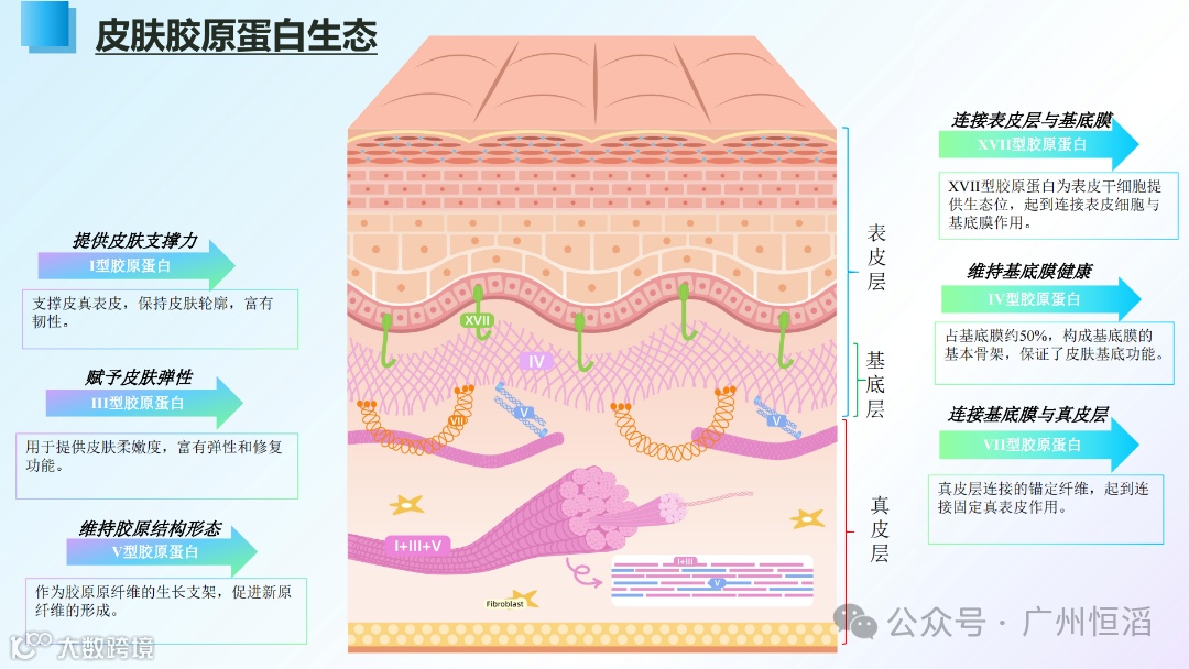 25岁以后,胶原蛋白受内外源因素影响,以每年1-2%的速度流失,原本紧致充盈的肌肤因体内胶原蛋白减少而变得皮肤松弛、粗糙、失去弹性。其中,I型和III型胶原蛋白占据皮肤总胶原含量的约95%,流失总量可高达48%,III型胶原流失约占79%,为主要流失胶原型别。