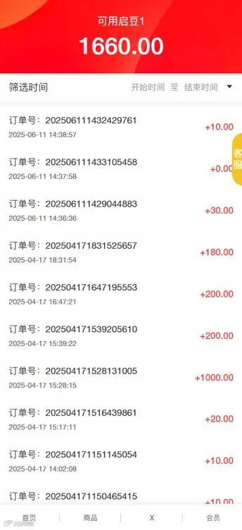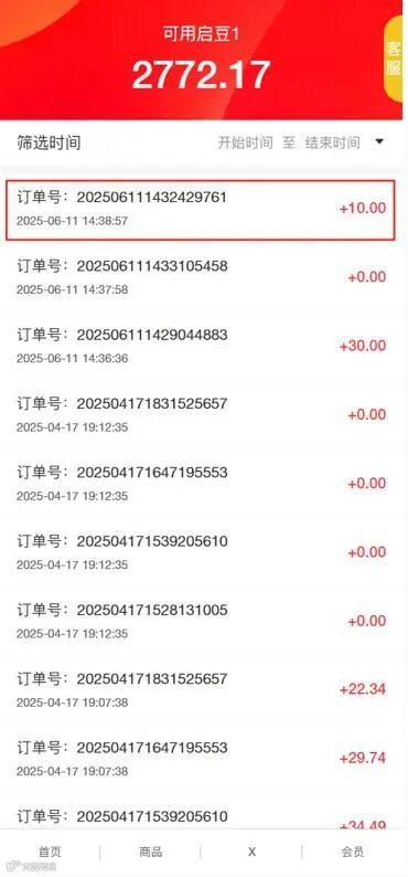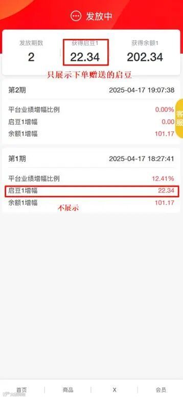 开关关闭后,启豆明显记录只显示下单赠送的启豆