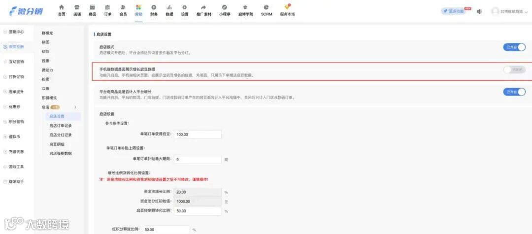 启店模式新增是否展示增长启豆数据设置