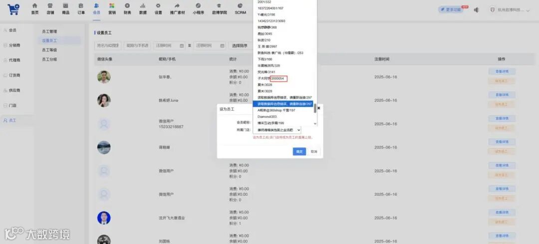 设置员工时选择门店下拉列表增加显示门店ID