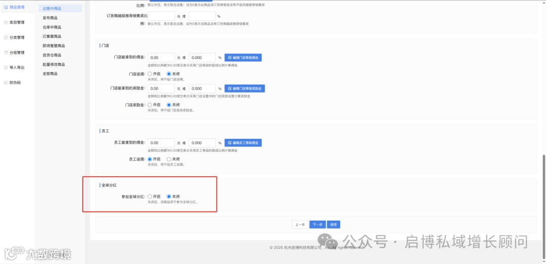 单品设置不参与全球分红,后台创建的订单也不参与全球分红