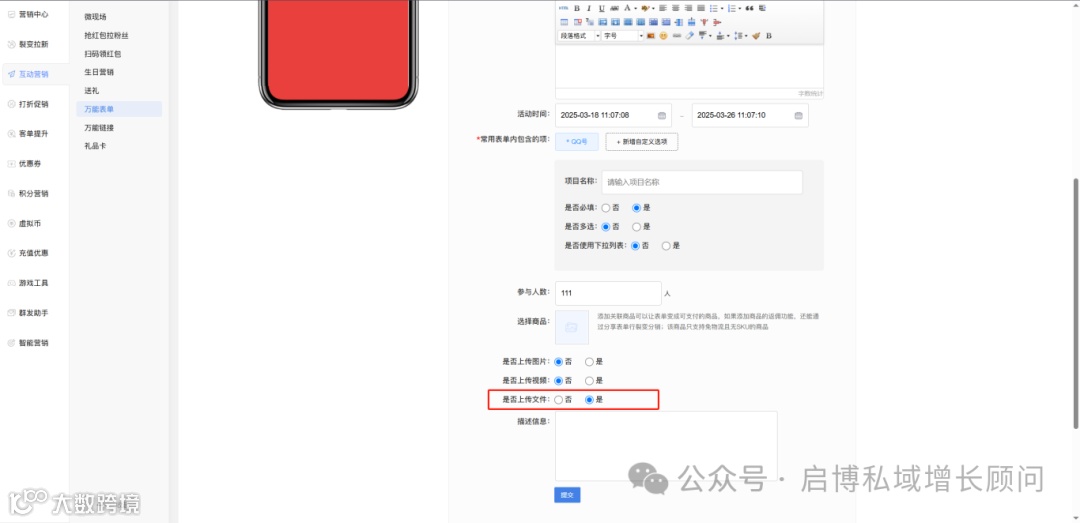 万能表单新增上传文件字段