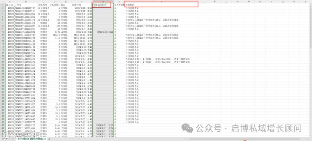 分账记录导出增加“分账成功时间”和“失败原因”字段
