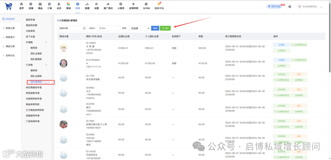 订货商团队管理奖导出新增“发放时间”字段
