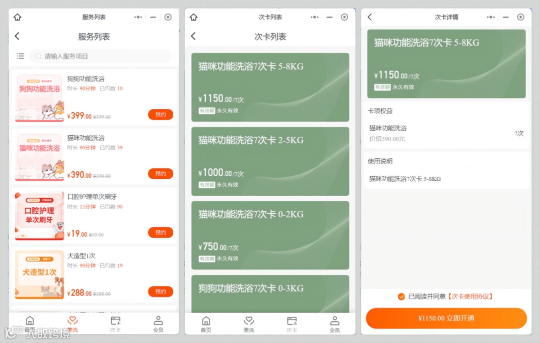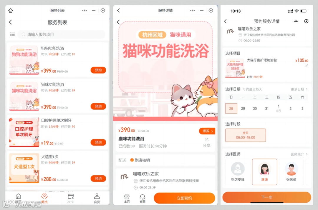 1. 预约服务:用户可以通过小程序在线预约宠物洗浴、节育等服务,方便快捷。