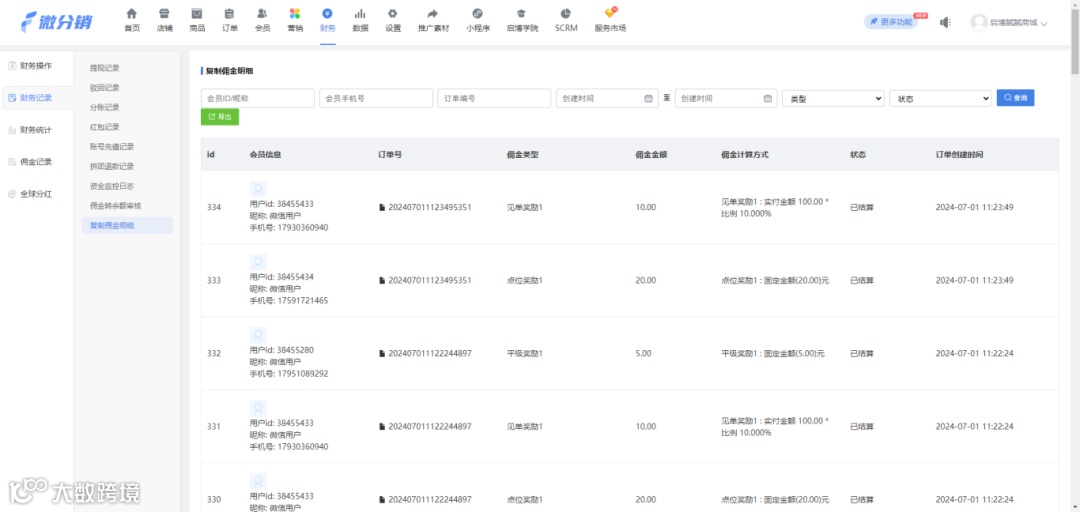 可查询每笔三三复制订单佣金情况