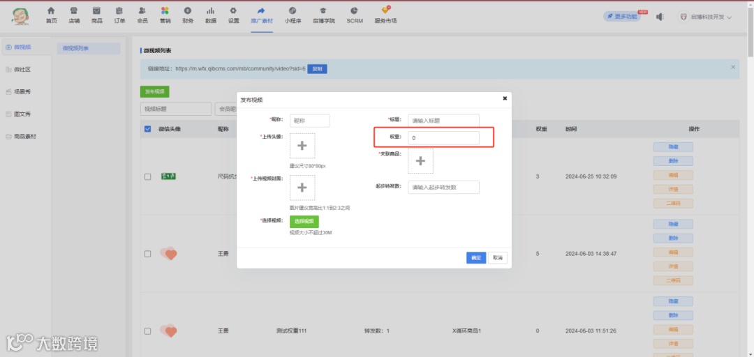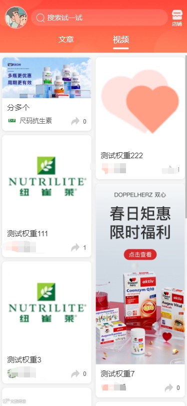 推广素材的微视频和微社区增加权重,移动端的展示根据权重值从大到小排序