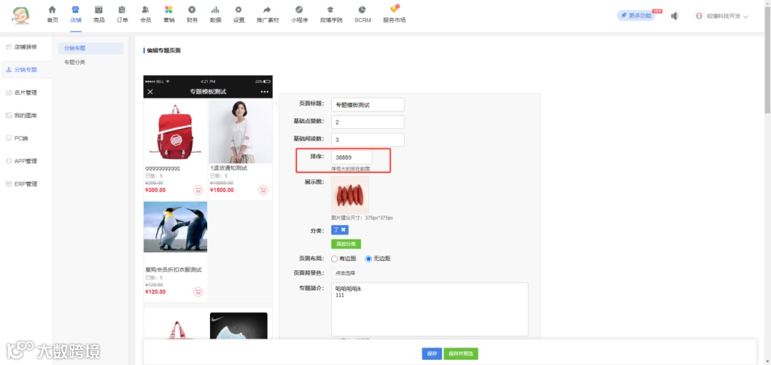 后台分销专题列表展示优先级根据排序值从大到小排序