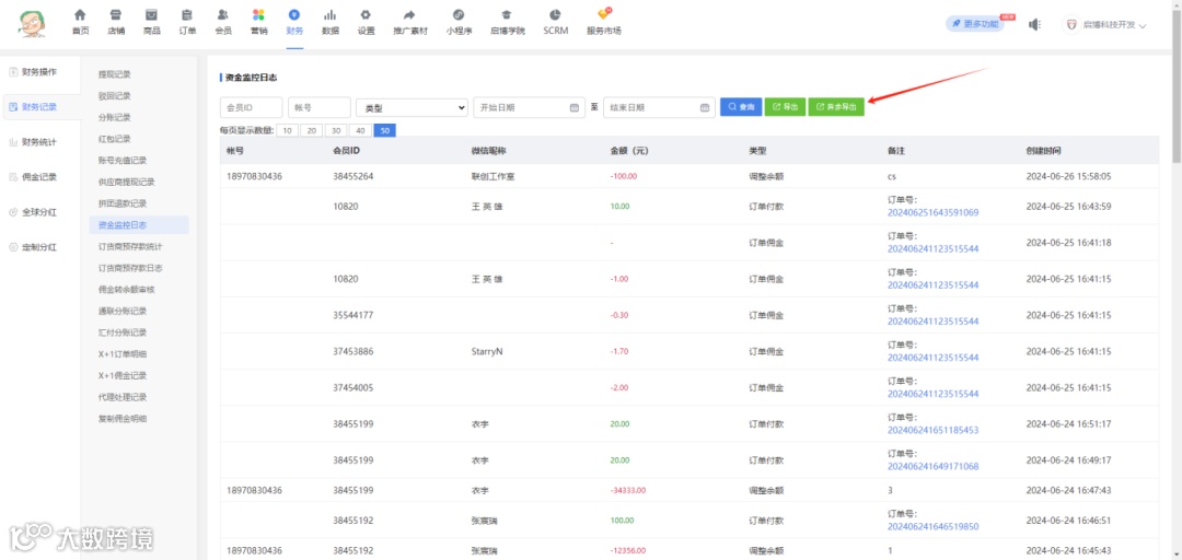 资金监控日志新增异步导出