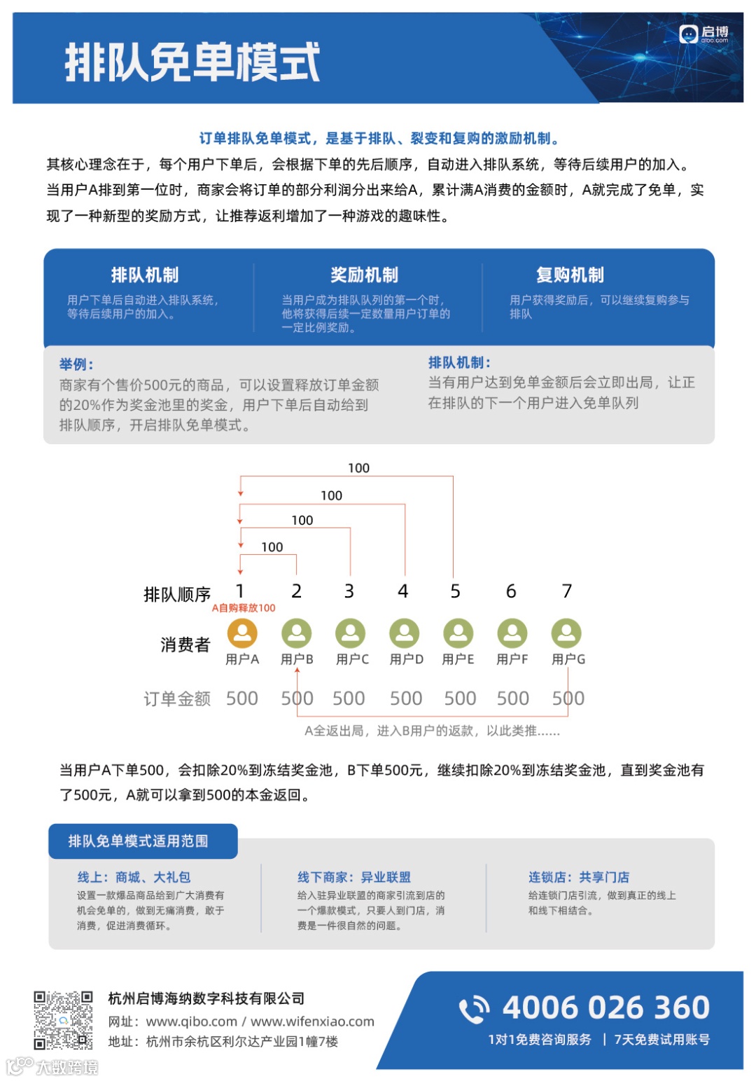 为了助力商家提升用户的购买频率和推荐分享效果,启博微分销商城系统本月上线了“排队免单模式”。