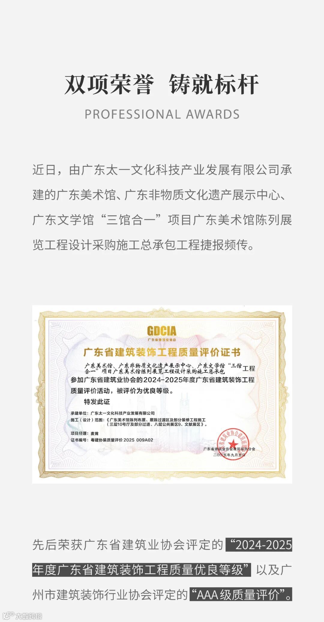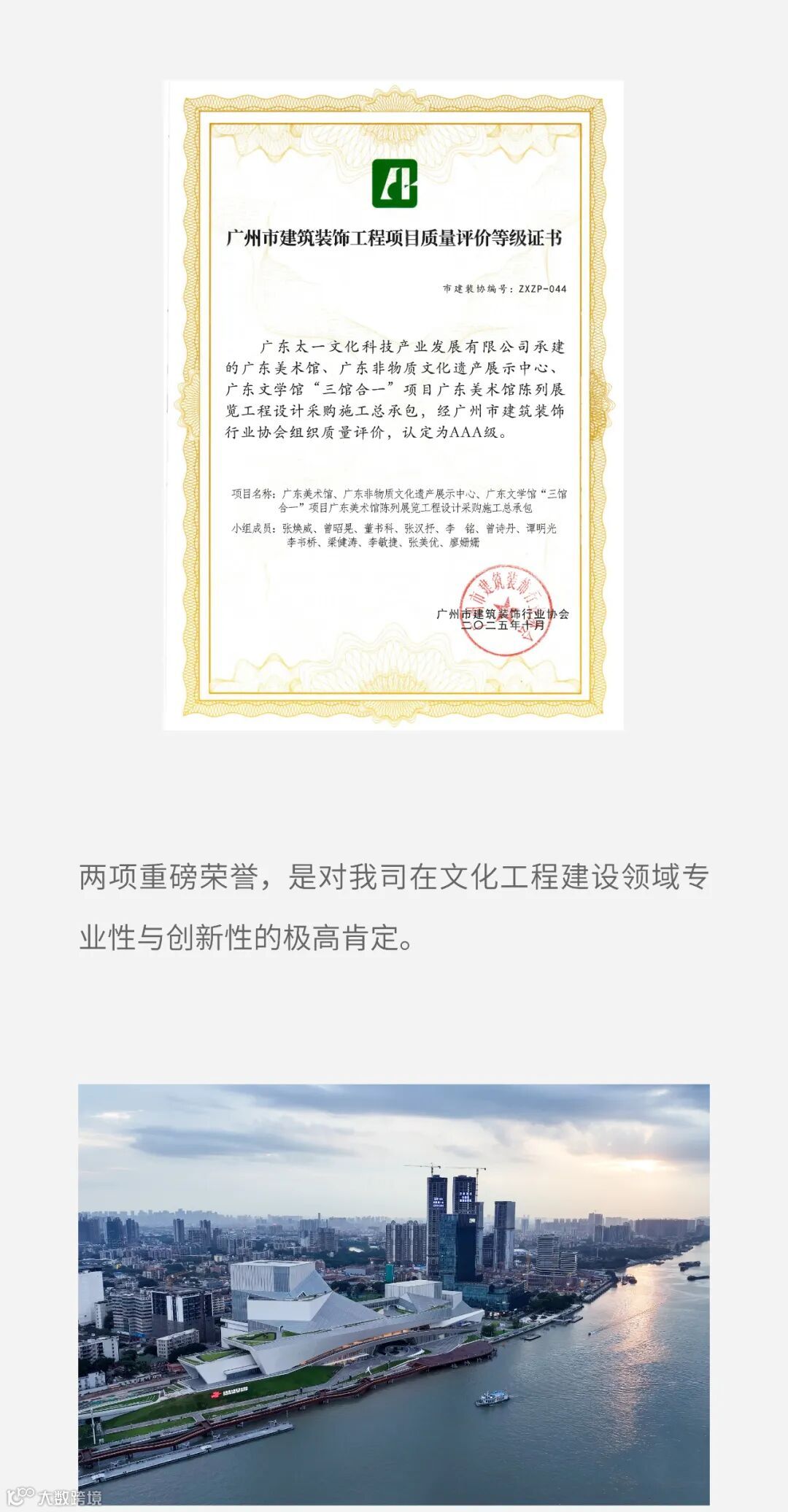 省优市优双喜临门!太一承建广东美术馆新馆连获两项权威工程大奖