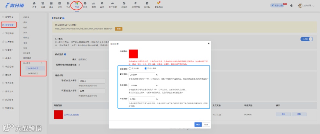 ,大家可以在微分销商家管理后台——营销中心——裂变拉新——X+1模式体验,