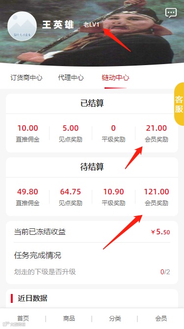 1、代理和老板可以自定义多个等级,等级可以设置不同的商品,购买后会升级到对应身份的等级,每个身份的等级都可设置不同的奖励比例