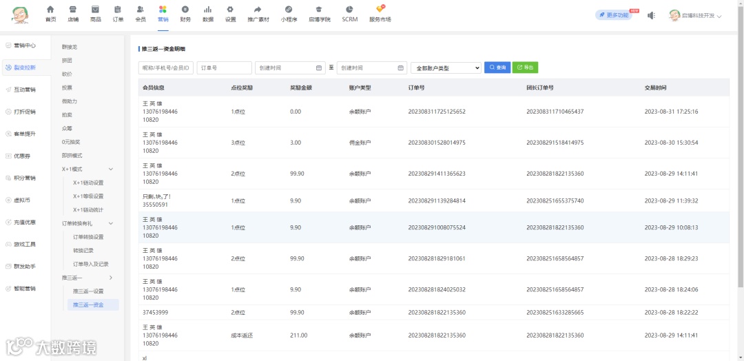 02、订单完成时结算:参与人付款后,点位奖励处于冻结状态,订单完成时才发放(参与人退款后不影响点位奖励)推广满人后且所有订单都完成(包括开团人)才返本金