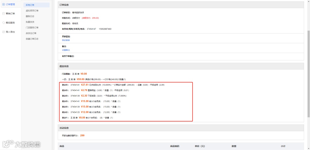 2、用户需要先下一单,下单后可以将该订单推广,其余用户购买对应规则中的其中一款商品,就算参与成功,按照点位给推广人分奖励,被邀请人下的订单也可以进行推广,分发奖励规则按照订单状态可以选择