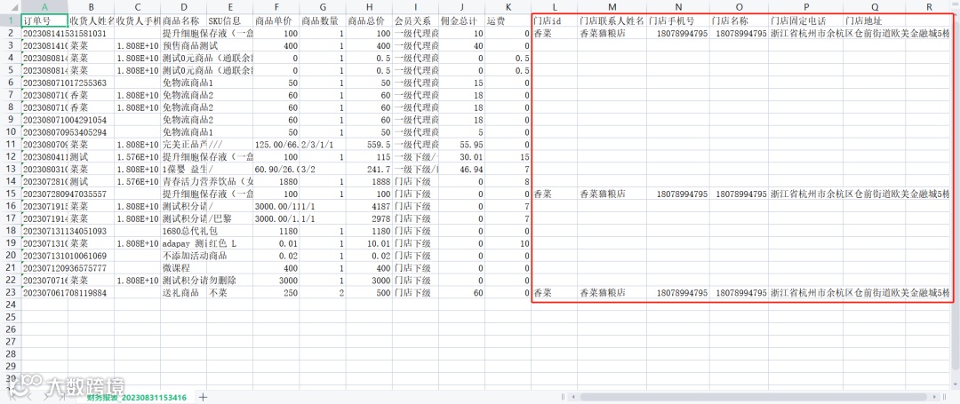 订货商与代理商财务报表导出字段优化(付费插件)【优化】