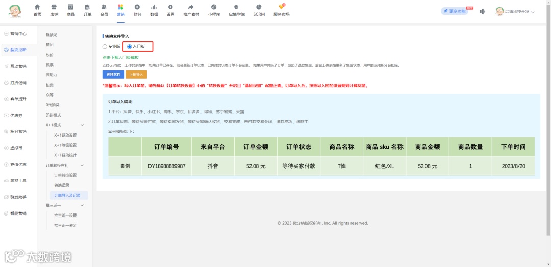 订单兑换有礼导入订单新增【入门版】,其他操作与之前一致