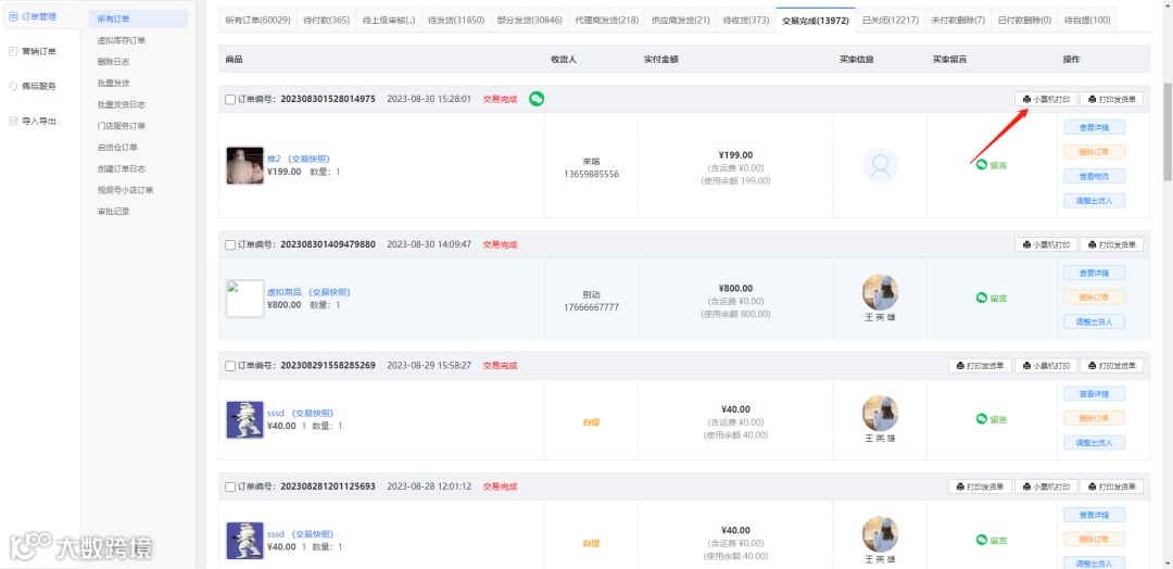 总部订单列表仅支持待发货、待收货两种状态的订单进行小票机打印