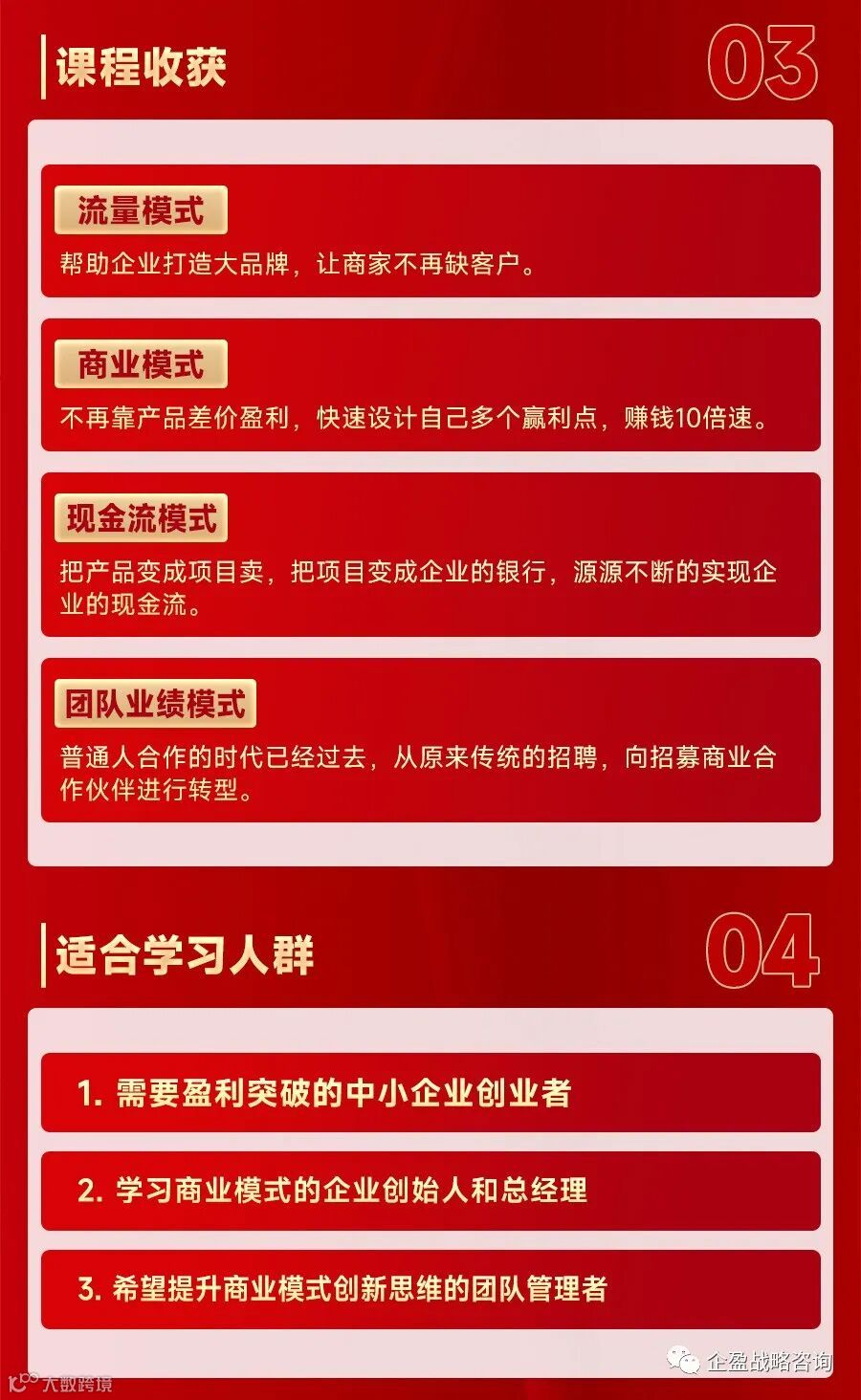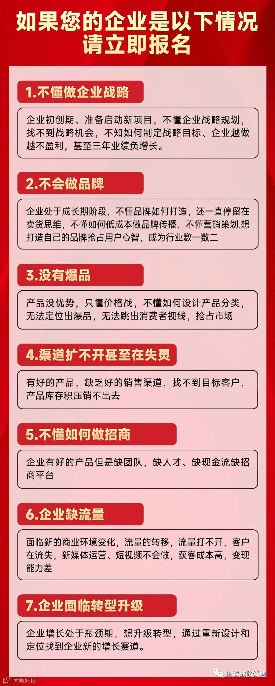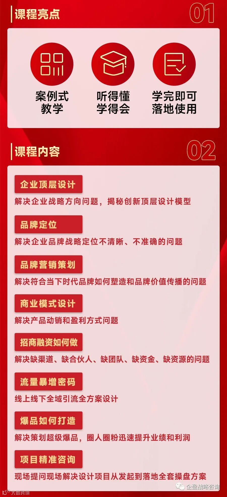 导读:1、解决企业利润增长8大难题2、300+企业落地验证,立省1000万企业咨询费3、解密企业从100万到100亿的营销增长落地方案
