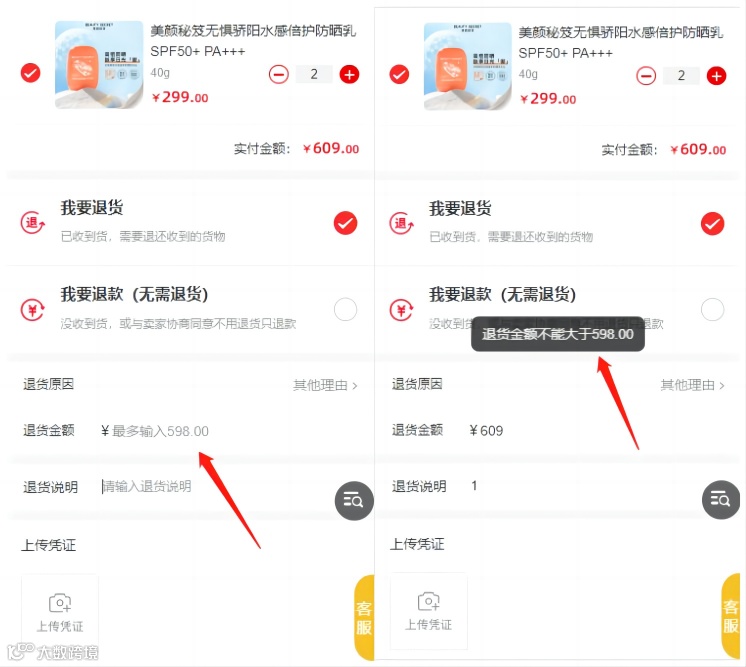 发货后的订单统一不退运费,用户在退款时只能退≤ “实付金额-运费” 的费用,超过会有错误提示