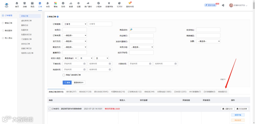 自提发货单及订单标签筛选