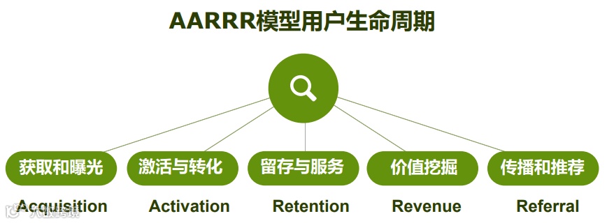 获取用户 —> 提高活跃度 —> 提高留存率 —> 转化付费 —> 自传播