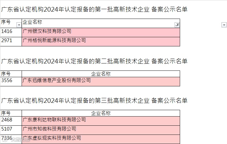 近日,全国高新技术企业认定管理工作领导小组办公室对广东省认定机构 2024 年认定的三批次高新技术企业进行备案公示。宏太智慧谷6家企业成功通过2024年度高企认定,创新力量再升级!