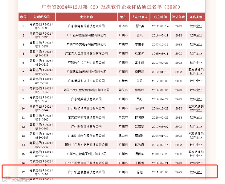 13、华途科技通过广东省2024年12月软件企业评估