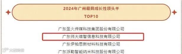 师大维智入选“2024年广州最具成长性领头羊TOP10”