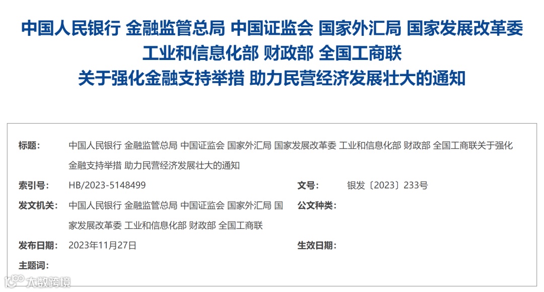 近日,中国人民银行、金融监管总局、中国证监会、国家外汇局、国家发展改革委、工业和信息化部、财政部、全国工商联等八部门联合印发《关于强化金融支持举措 助力民营经济发展壮大的通知》(以下简称《通知》),提出支持民营经济的25条具体举措。
