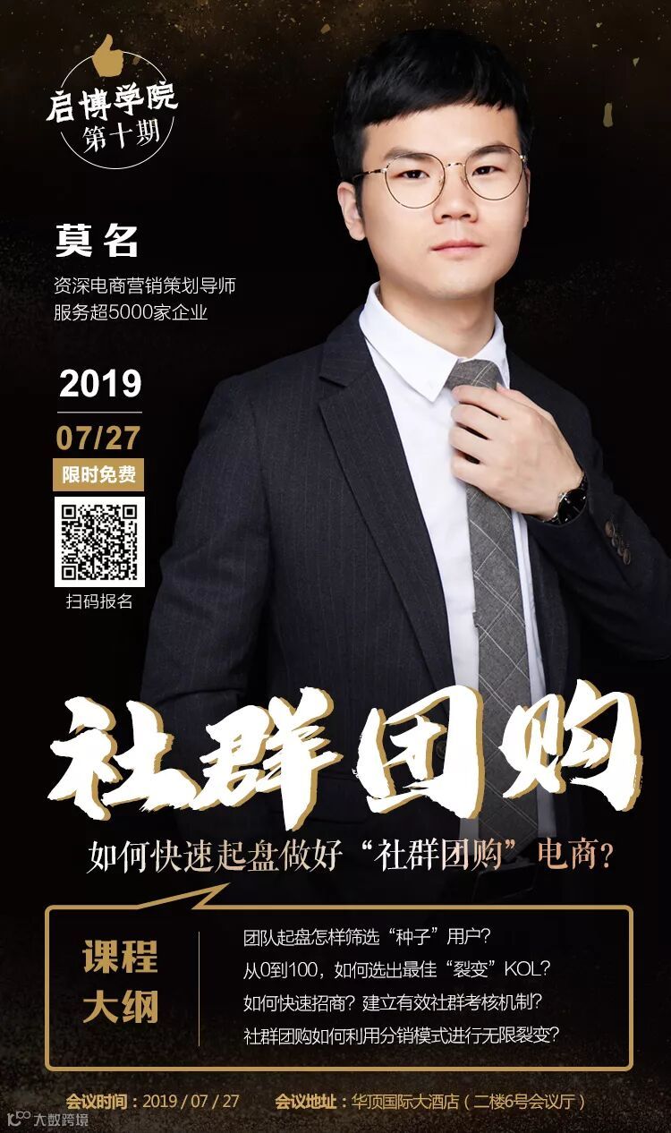 社群发起式网络团购越来越受到消费者的青睐和商家的重视。社群发起式网络团购的重点在于“团”,而不在于“购”。网络运营商应确保社群成员得到真实的产品信息,使消费者对社群形成较高的信任度,以利于社群的发展与团购交易数量的提升。那么如何才能够快速的起盘做好“社群团购”。7月27,听莫名老师现场一一讲解。