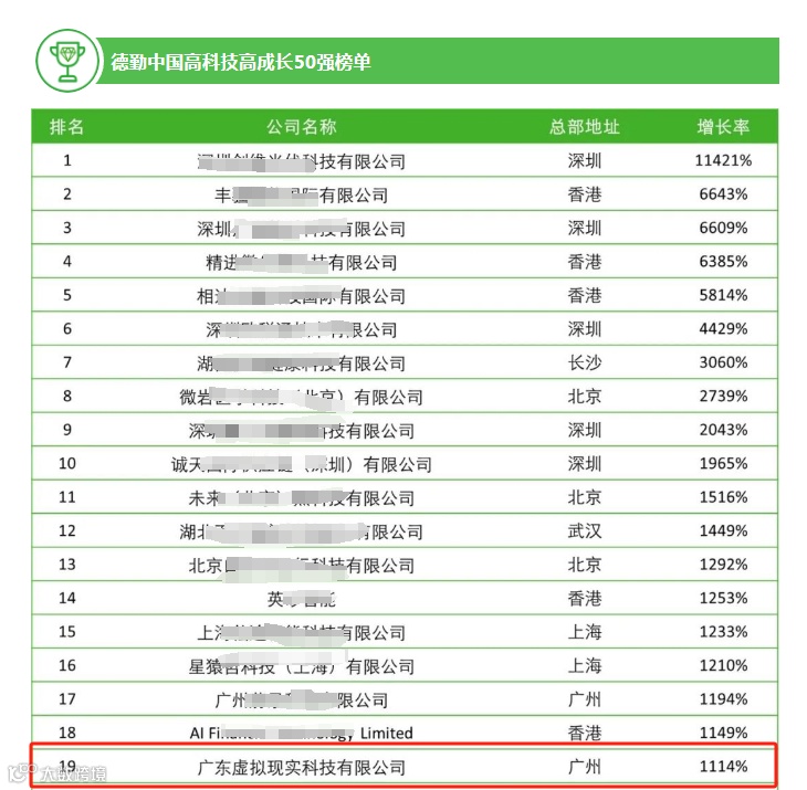 燧光上榜德勤中国高科技高成长50强榜单,及广州高科技高成长20强榜单